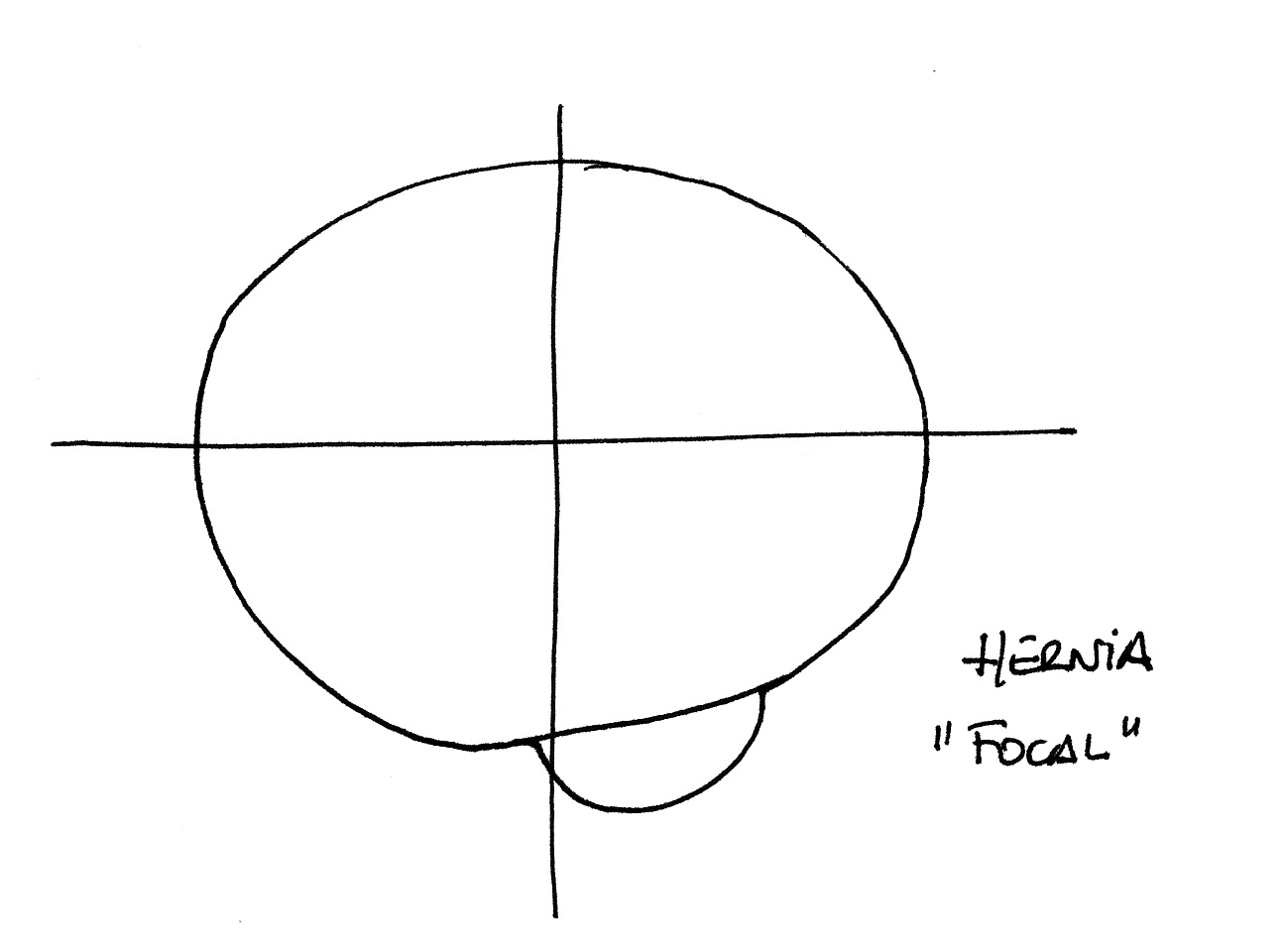 A su vez, la herniación puede definirse como focal, cuando involucra enos del 25% o 90º de circunferencia y de base ancha cuando involucra entre el 25-50% o 90-180º de circunferencia del disco.