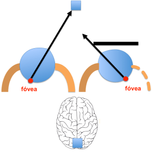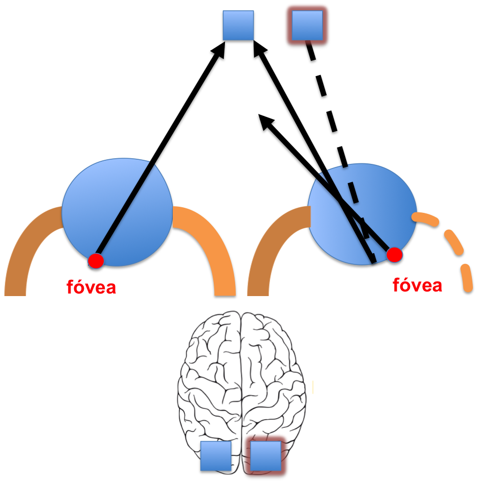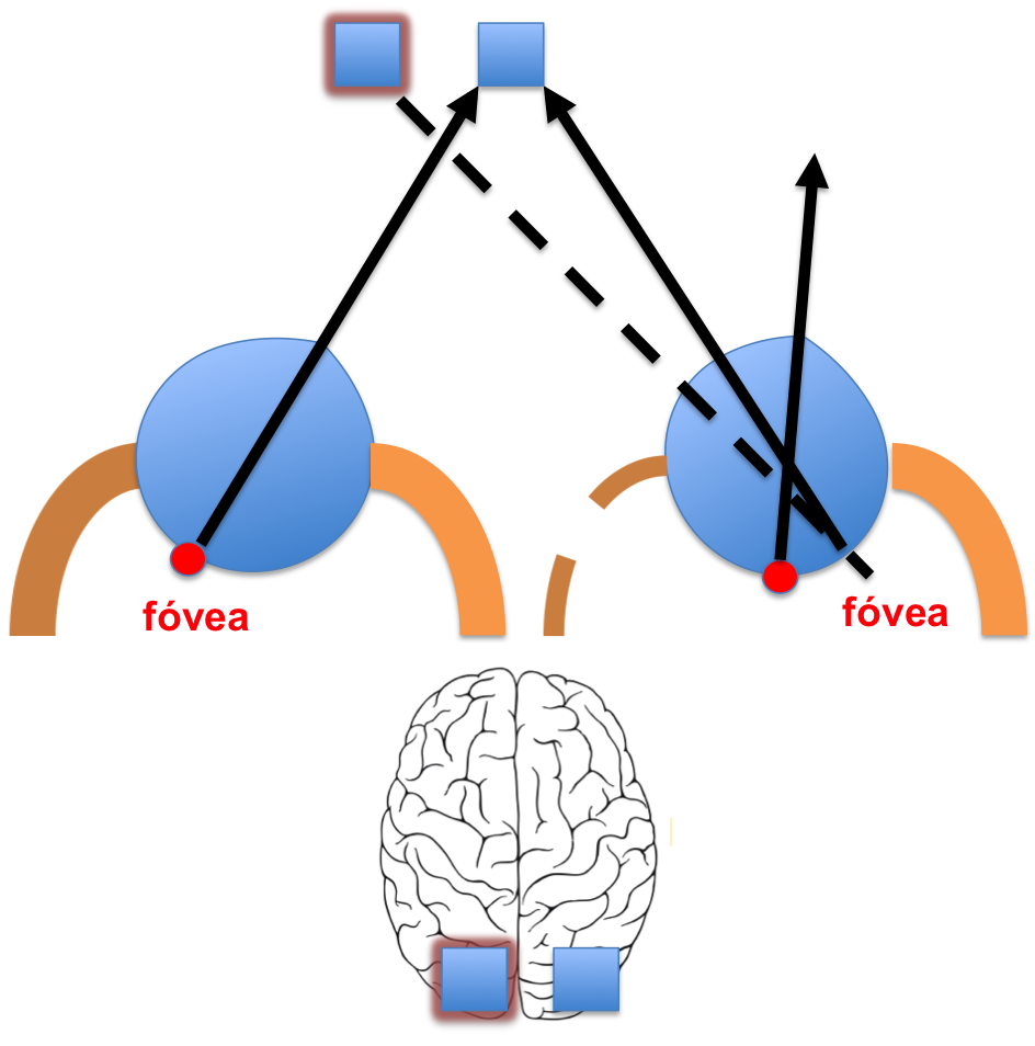 La diplopía o visión doble que atendemos los neurólogos habitualmente es la diplopía binocular. La diplopía binocular es la que se origina por un defecto en la alineación de los ejes oculares, lo que da lugar a que un punto/objeto del campo visual se proyecte sobre dos puntos retinianos discordantes. La diplopía binocular es la que se percibe con ambos ojos y que desaparece cuando ocluímos cualquiera de los dos. En la figura 1 se muestra la visión normal. Las imágenes de un mismo objeto se proyectan sobre los correspondientes puntos de la retina (la fóvea es la zona de mayor agudeza visual) de tal manera que el cerebro percibe una sóla imagen. Cuando las imágenes no se proyectan en los puntos correspondientes de la retina (ver figura 2 y 3) el cerebro percibe dos imágenes donde sólo hay una. Cada globo ocular se mueve por la acción de 6 músculos que están inervados por tres nervios craneales que se denominan oculomotores.